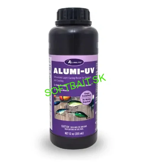 Alumilite Alumi-UV je jednozložková, polopružná, extrémne odolná, transparentná živica na nátery a namáčanie. Po vytvrdnutí UV svetlom (vlnová dĺžka 365nm) vytvára vysoko lesklý povlak na papieri, plaste, dreve, kove a ďalších materiáloch. Alumi-UV má strednú viskozitu,
